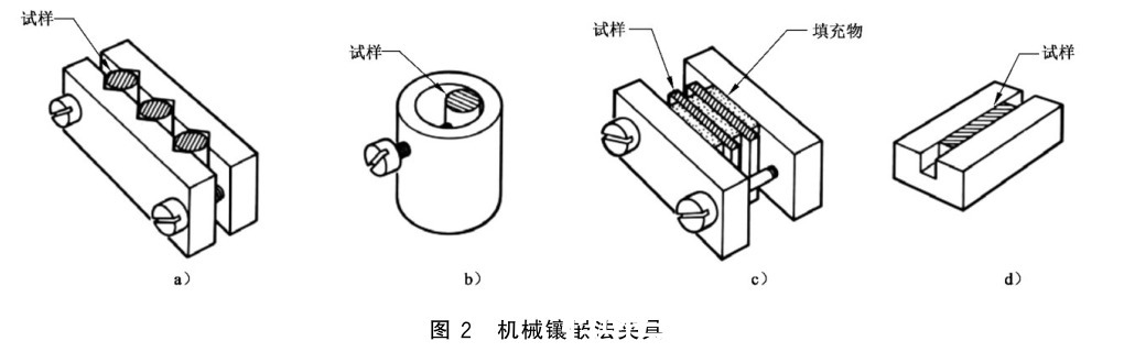 用螺栓和螺钉将样品固定在合适的夹具中(见图2)。夹具的硬度应接近试样的硬度,以减少研磨抛光时试样边缘的圆角效应;夹具的成分应与样品的成分相似,以避免形成影响腐蚀效果的电偶反应。